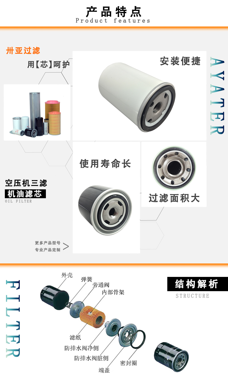 因為擁有在液壓行業過濾件的經驗,卅亞開發了一系列適合于螺桿式和葉片式壓縮機的油過濾器。要注意的是,卅亞生產的這類油過濾器能夠承受一定的壓力和溫度劇烈變化,并有能承受的壓力和溫度值。